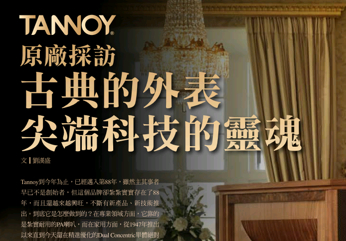 Tannoy, established by Mr. Guy R. Fountain in London, the United Kingdom in 1926, is one of the longest established audio companies in the world for loudspeaker systems production.